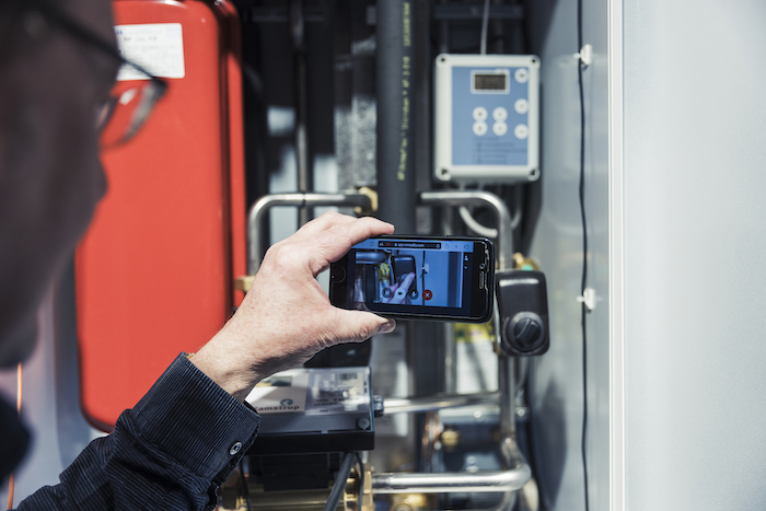 Após realizar instalações de aquecimento distrital para clientes residenciais de forma remota, a equipe dela também conduz visitas informativas. Nesses atendimentos, os especialistas em produtos ajudam novos clientes a entender melhor seu sistema de aquecimento. Os clientes entram na sessão de suporte remoto por meio de um link de chamada, e os técnicos podem dar instruções claras e apontar para diferentes partes do equipamento através da visualização compartilhada.